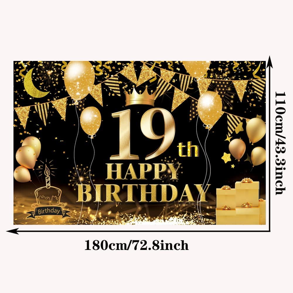 Happy 19th Birthday Backdrop Banner Black Gold 19th Sign Poster 19 Birthday Party Supplies For Anniversary Photo Booth Photography Background Birthday Party Decorations 72 8 X 43 3 Inch Walmart Canada